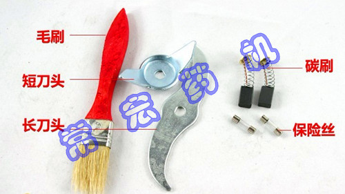 隨機配:毛刷1把,碳刷1副,保(bǎo)險絲2個, 1付刀片。