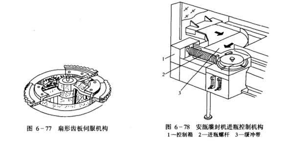 (7)在進瓶(píng)傳送帶的 VI端設置了一個可伸縮的緩(huǎn)衝器和一個界(jiè)麵控製器,該容器中裝有一個容器的上、下(xià)限製接(jiē)近開關,見圖6-78。在緩衝帶3在下限(xiàn)(也就是瓶子缺失)時,該下限接近開關停止進入(rù)瓶子螺(luó)旋2,而不供給瓶子;當緩衝帶到達高度(也(yě)就是裝滿瓶子)時,頂部(bù)接近開(kāi)關(guān)可使烘箱傳送網帶停止運轉,停止給瓶。此控製盒可以使兩台機器的轉速配合協調,配合清潔機(jī)與(yǔ)烘箱傳送網帶(dài)的界麵配合,使洗、烘、灌三(sān)機達到界麵(miàn)匹配、協調、運行安全(quán)。